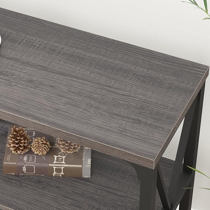 IBF Long Console Table, Industrial Entryway Table with Storage Shelves, Modern Metal Wood Sofa Table Behind Couch, Farmhouse 3 Tier Foyer Hallway Table for Entry Living Room, Dark Gray Oak, 63 in