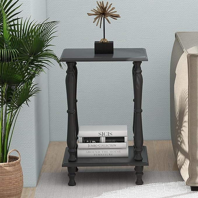 TaoHFE Square Black French Style End Side Table with Open Shelf Retro Vintage 2-Tier Bedside Table for Living Room Small Space