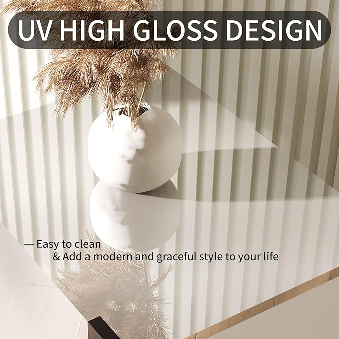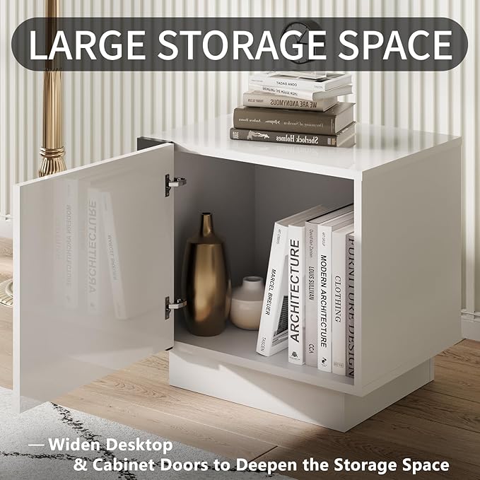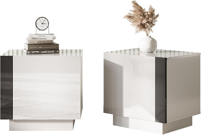 • MODERN HIGH GLOSS STYLE: Featuring glossy white-and-black door in minimalist concept and UV desktop with ever-lasting finish, this side table adds a modern and technological touch to your home. Easy-to-clean and graceful.