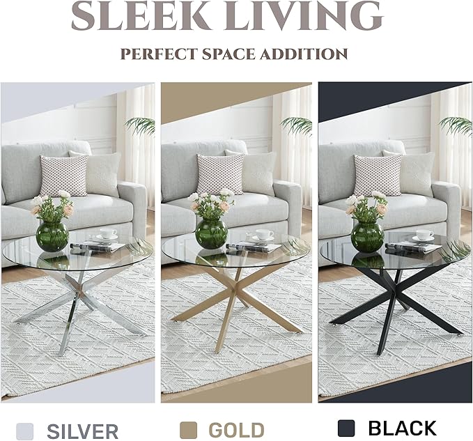 • Tempered Glass: Our modern round coffee table use a hard wearing gray tempered glass top, offers durability, enhanced safety, thermal resistance, and excellent transparency for you