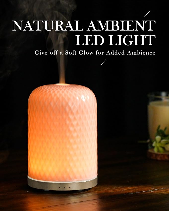 • 【Warm Ambient Light Gives off a Relaxed Atmosphere】 - Compared with other essential oil diffusers on marketing, this ceramic essential oil diffuser adopts warm yellow LED ambient light. Soothing light with even fragrance of aromatherapy diffuser gives off a soft glow for added ambience. Take a break from your busy and enjoy a moment of restful. Relieve stress and promote sleep. Best gift for your loved one on special days-birthday, anniversary days, Valentine's day and Christmas