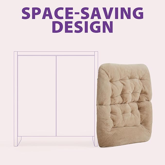 OAKHAM Comfy Chair for Adults, Soft Faux Fur Folding Lounge for Bedroom Living Room Dorm Rooms Flexible Reading Chair for Teens Kids, X-Large Foldable (Faux Fur-Beige)