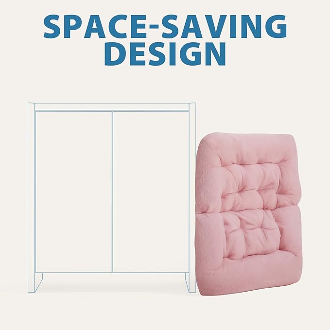 OAKHAM Comfy Chair for Adults, Soft Faux Fur Folding Lounge for Bedroom Living Room Dorm Rooms Flexible Reading Chair for Teens Kids, X-Large Foldable (Ottoman-Pink)