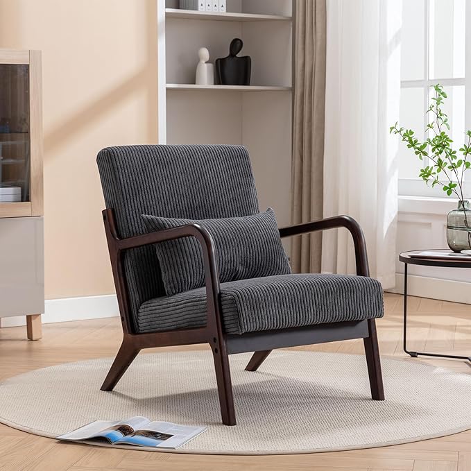 • [PREMIUM MATERIAL] : This accnet chair uses a high-quality wood frame to ensure structural stability, the preferred corduroy fabric is soft and comfortable to the touch, and the high-density sponge-filled cushion provides a soft enough seating sensation