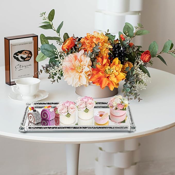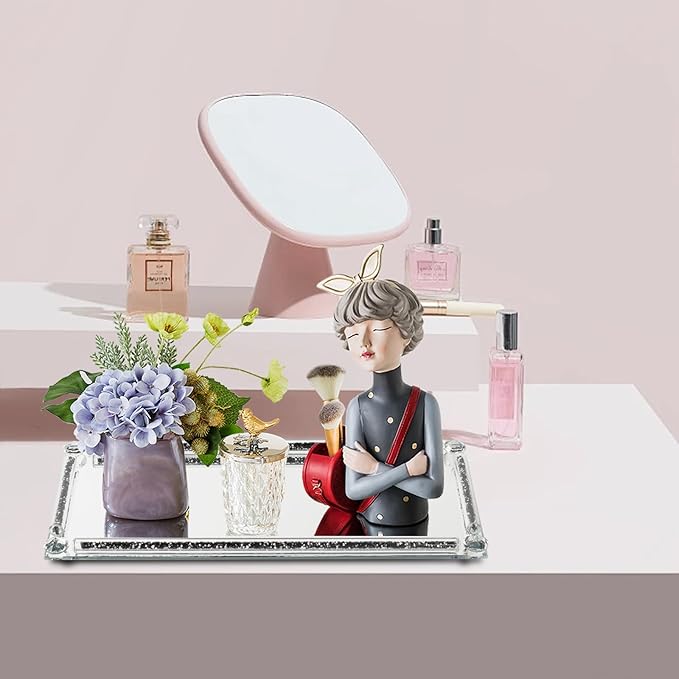 • [High Quality And Unique Stylish Design] - Our mirror trays have an elegant appearance and considerate design that fit many different style of scenario, brings fashionable grace element to you, meet requirement of modern beauty.it will be a very nice gift to a lady who loves to look at pretty things.Also it is suitable to send to your friends,family in festival or new house warming.