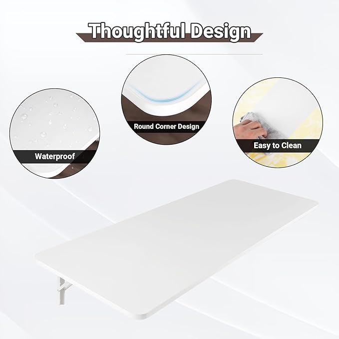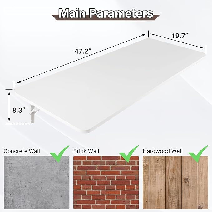 • Wall Mounted Folding Table: The collapsible wall desk features coated solid medium density fiberboard and heavy duty folding steel brackets, which is sturdy and durable