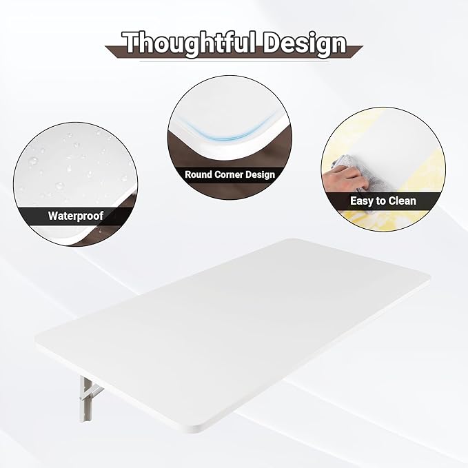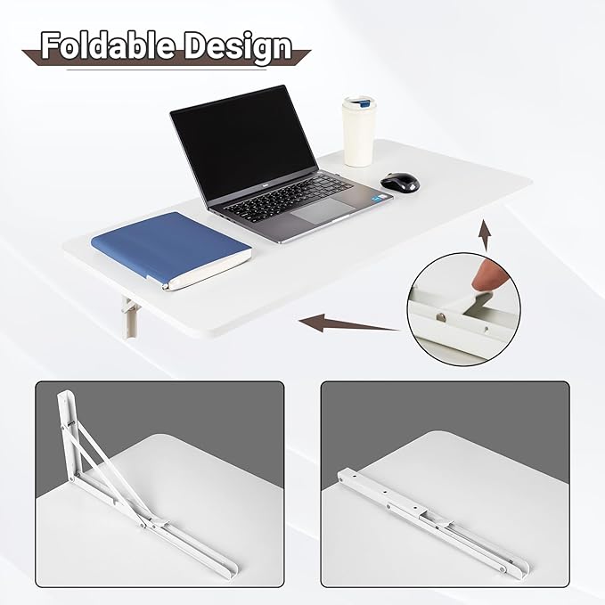 • Wall Mounted Folding Table: The collapsible wall desk features coated solid medium density fiberboard and heavy duty folding steel brackets, which is sturdy and durable