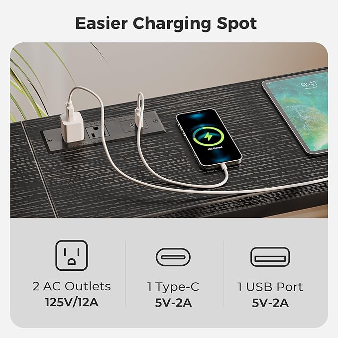 • [No Low Battery Warnings]: Imagine lounging on your sofa and brushing your phones to relax after a busy week. Don’t let low battery disappoint you. Let this sofa table narrow long with 2 AC outlets, 1 USB port and 1 Type-C port provide close-at-hand power