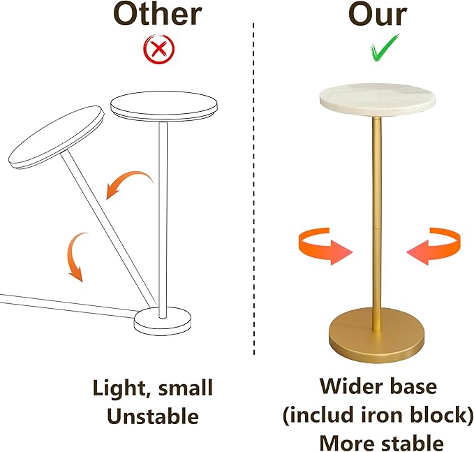 • 【Material】The table top is made of marble. There is a thickened metal connecting tube in the middle, combined with a widened and weighted base, making this martini table more stable.NOTE: Natural marble has different textures.
