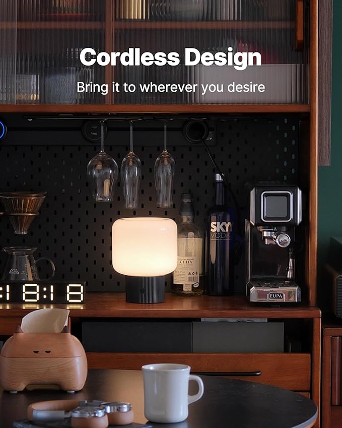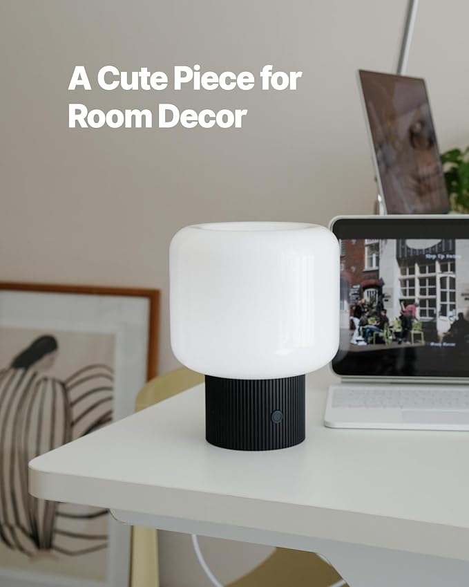 • Opal Glass Shade & Sturdy Metal Base: Crafted with a white opal glass lampshade, this small table lamp beautifully showcases the soft and calming quality, while its vintage metal striped base ensures both durability and stability; Additionally, the mushroom lamp's smooth surface not only enhances its visual charm but also simplifies maintenance and cleaning; Designed with portability in mind, this cordless table lamp allows you to take it wherever you desire with ease