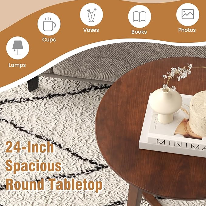Giantex 24" Round End Table, Mid Century Modern Side Table with Adjustable Foot Pads, Sofa Couch Accent Table, Small Coffee Table for Small Space Living Room, Nightstand for Bedroom (Walnut)