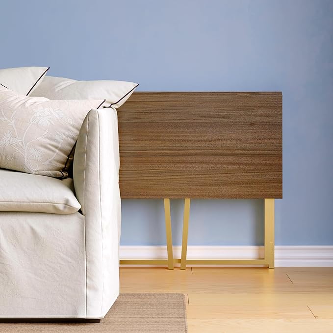 4NM 31.5" Small Folding Desk, Foldable Computer Home Office Desk, Study Writing Table for Small Space Saving Bedroom, Easy Assembly - Brown and Golden