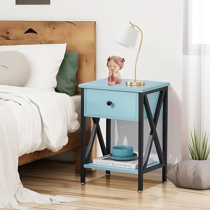 • ★ End Tables with Storage Drawer - VECELO nightstands set of 2 are designed for one drawer and open storage shelf for placing a lamp, Ipad, small radio, books etc. You can put your precious or private items in the drawer. Making your bedroom and living room tidy and organized.