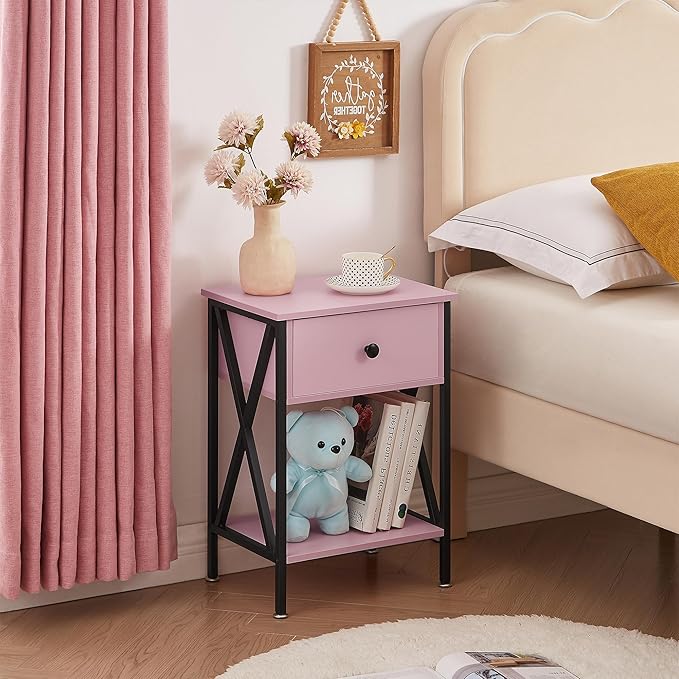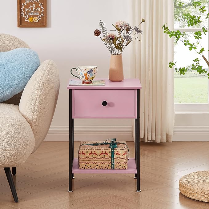 • ★ End Tables with Storage Drawer - VECELO nightstands set of 2 are designed for one drawer and open storage shelf for placing a lamp, Ipad, small radio, books etc. You can put your precious or private items in the drawer. Making your bedroom and living room tidy and organized.