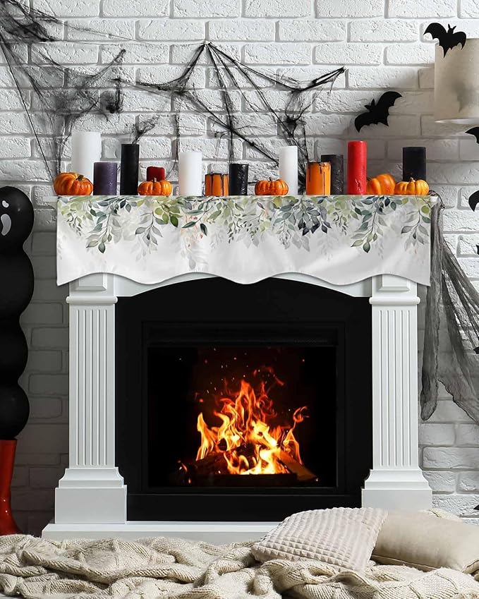 • Bright Home Decor: Watercolor plant eucalyptus leaves decoration ideal for decorating fireplace, table, hutch, shelf, tv stand, dresser bedside table, fireplace scarf is an elegant and easy way to transform your mantel, easy for you to match well with various styles of romantic occasions