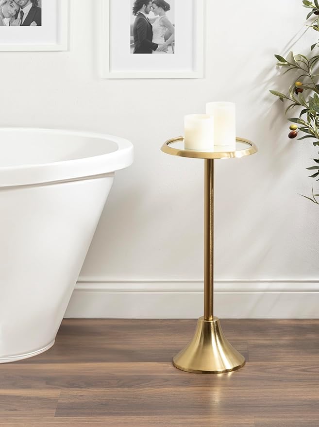 Kate and Laurel Sanzo Modern Pedestal Drink Table, 10 x 10 x 23, Antique Gold, Decorative End Table with Mirrored Tabletop for Use as Small Plant Stand or Cute Martini Table