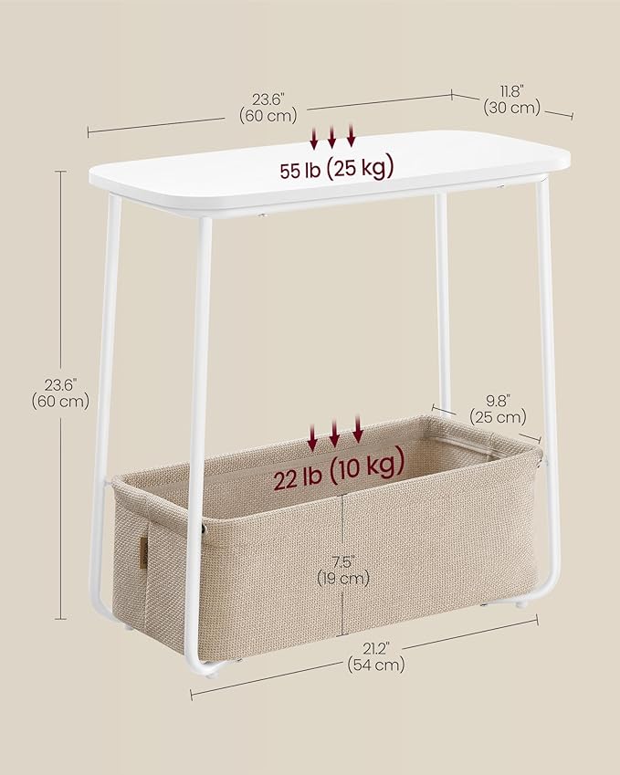 VASAGLE LILEA Collection - Side End Table with Fabric Basket, Modern Nightstand, Rectangular Bedside Table, for Living Room, Bedroom, Matte White and Camel Brown ULET230W10