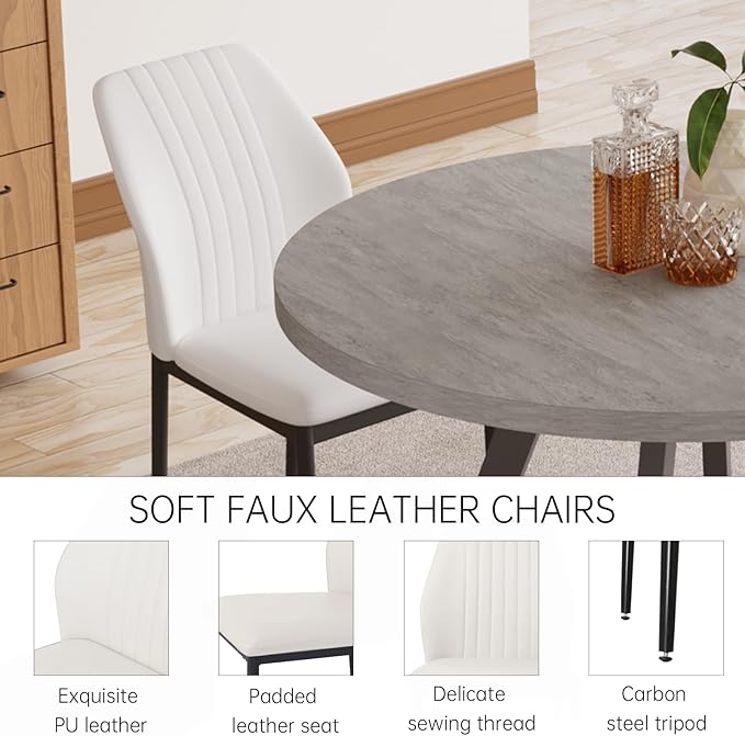 • Stylish Round Table Set: This modern dining set features a stylish round table crafted from sturdy MDF material with a unique textured finish, along with 2 comfortable PU leather chairs with ergonomic curved backs.