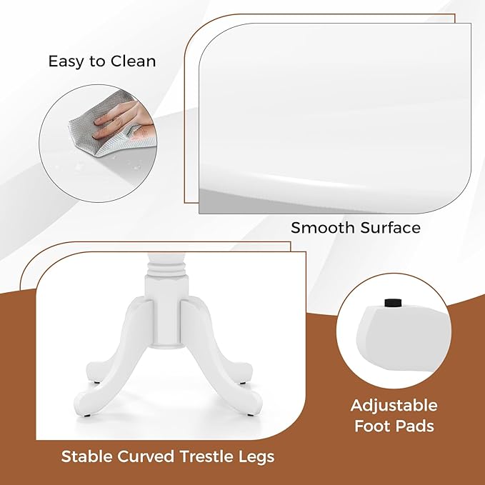 Giantex Round Dining Table, 39" D X 29" H, Rubber Wood Pedestal Table W/Round Tabletop & Curved Trestle Legs, 4-Person Dinner Table for Kitchen, Dining Room, Restaurant (White)