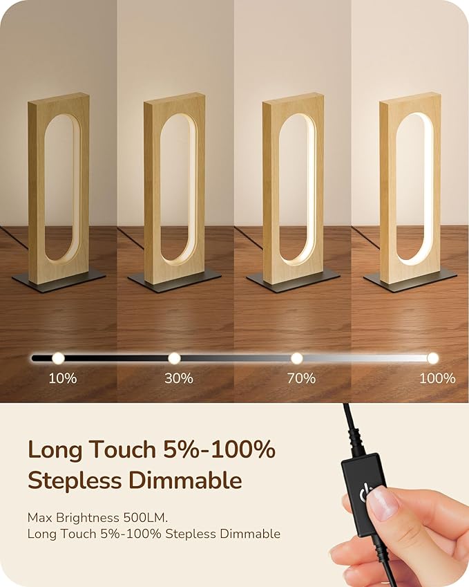 • [Creative Solid Wood Design] Crafted from one piece of premium solid wood without any seams, this dimmable table lamp features a simple and stylish design; original wood color of the lamp body adds natural elegance to your nightstand, bedroom, living room, or desk; compact, no space occupied, perfect addition to home decor