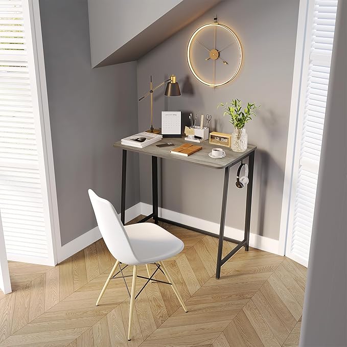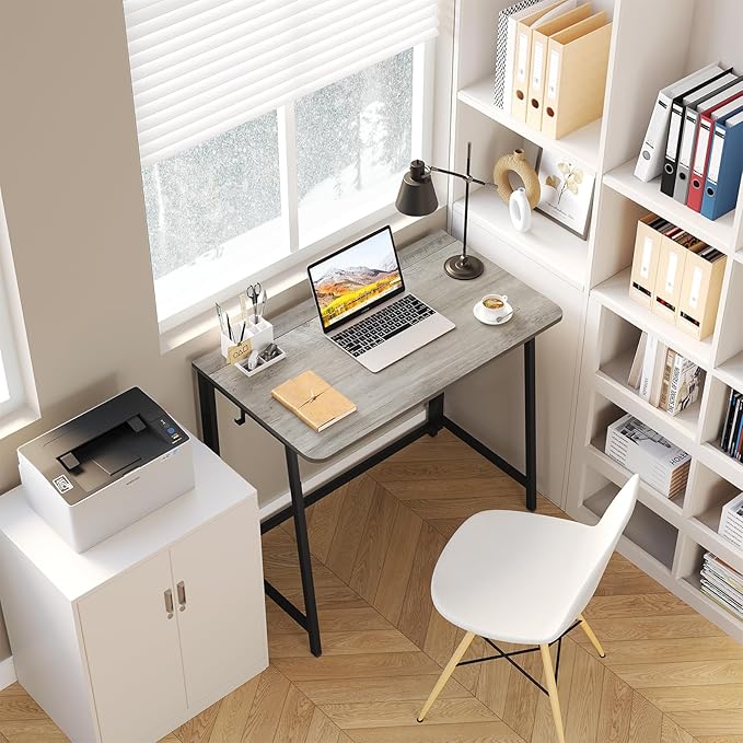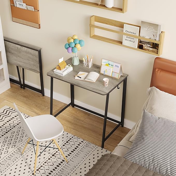 WOHOMO Folding Desk, Small Foldable Desk 31.5" for Small Spaces, Space Saving Computer Table Writing Workstation for Home Office, Easy Assembly, Gray-Wash