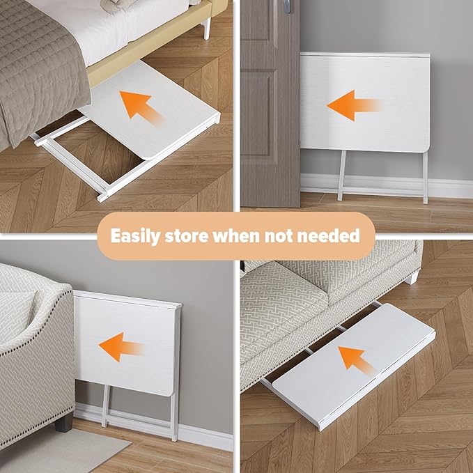 • 【Hided Foldable Desk】Foldable table dimensions is 2.76"D x 31.5"W x 29.52"H when it is folded up, only 2.76" width, very slim to store easily behind a door, under the bed or couch, side of refrigerator, small coner space, or RV etc. when not in use, keeping the tidy of the room. The portable desk is sturdy; Also can take it away for a travel with your family(easy to disassemble so can adapt more types of car space).