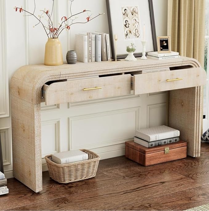 • 💗 Console Table with Drawers: The console table features two hidden and spacious drawers to help you conveniently keep your miscellaneous items organized and your necessities within easy reach. The sleek design of this console table allows it to fulfill the function of a console desk to display your treasures in an entryway or hallway, but it can also be used as a work desk in your home office.