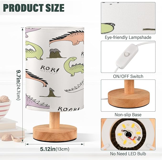Bolaz Small Table Lamp for Bedroom Funny Dinosaur Table Lamp Nightstand Lamp for Livingroom Office Reading Working Table Desk