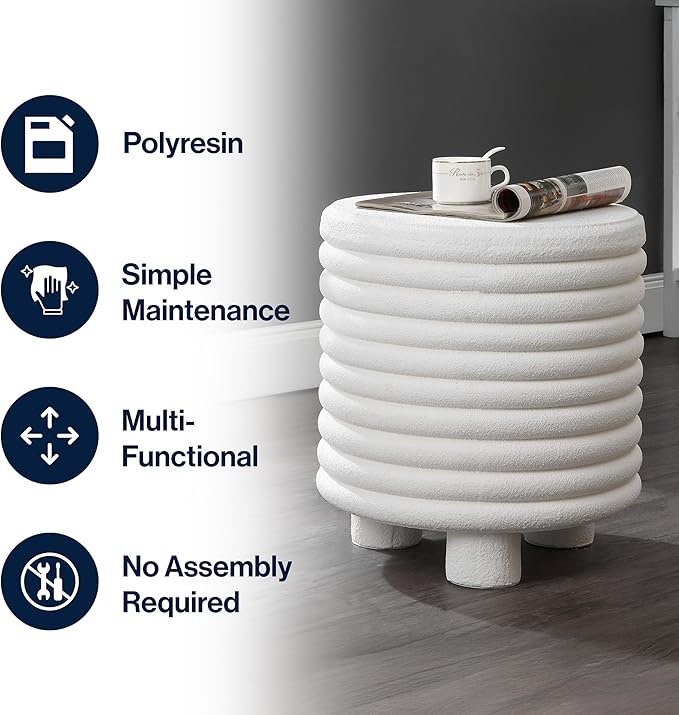 JONATHAN Y TBL1107B Evans 18" Minimalist Modern 3-Legged Drum Indoor/Outdoor Accent Table, Contemporary, Mid-Century, Art Deco,Bohemian, Patio, Garden, Bathroom, Living Room, White Frosted