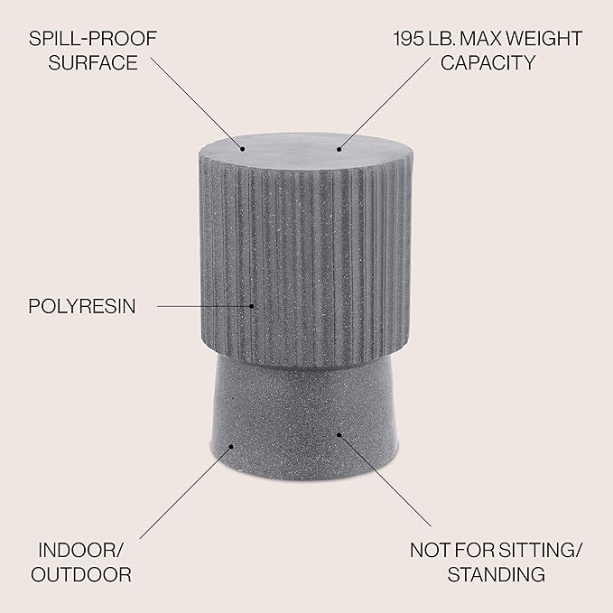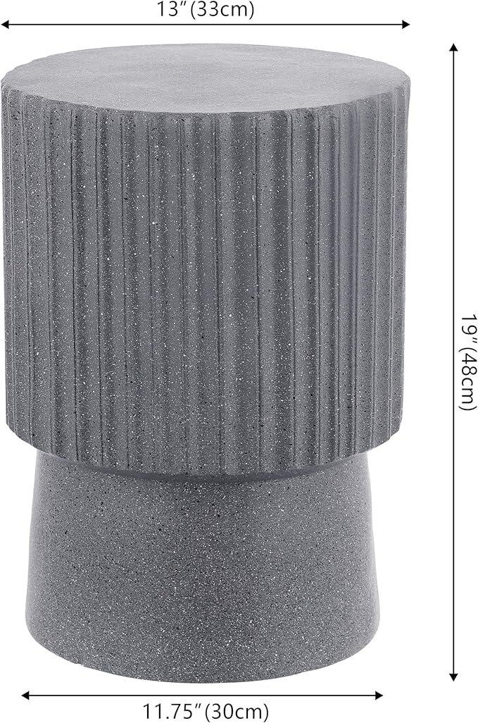 JONATHAN Y TBL1102A Louisa 19" Modern Art Deco Tambour Indoor/Outdoor Accent Table Minimalist, Contemporary, Bohemian, Mid-Century, Patio, Garden Room, Bathroom, Living Room, Gray Terrazzo Finish