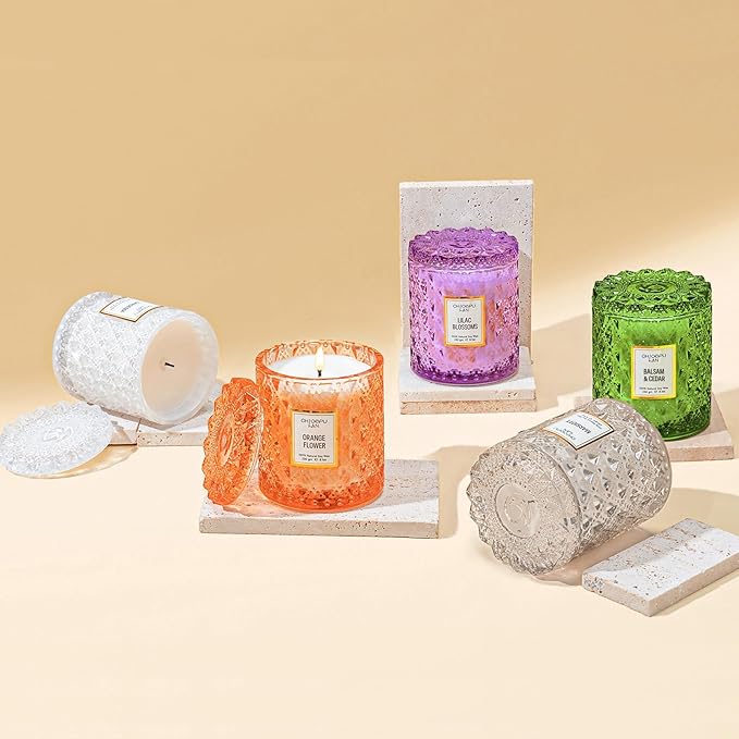 • Delicate Jar Design - Designed with delicate Lingge patterns carved on the glass jar to serve an ideal present to exchange greetings. Perfect gift for any occasions and unique candle jar can be used as a charming decorative storage container.