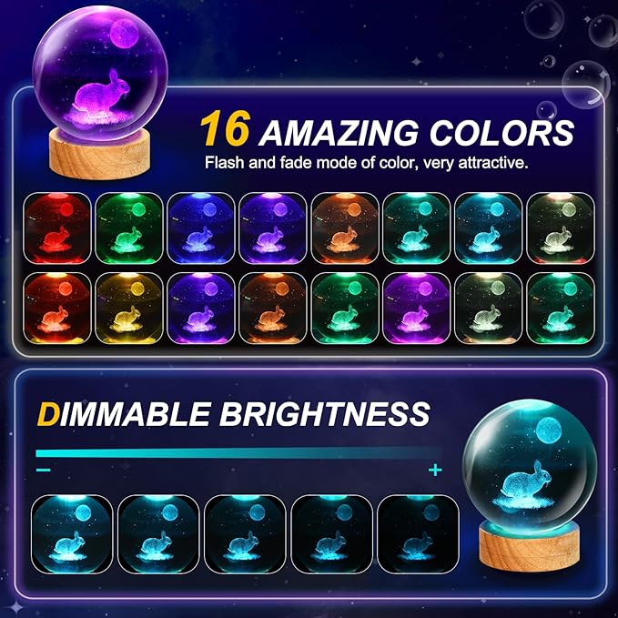 • 🏵️【Versatile Lighting Options】With 16 color variations, this Rabbit Crystal Ball Light allows you to create the perfect ambiance for any occasion. Whether you want a soft and soothing light or a vibrant and energetic atmosphere, our light can meet your needs.