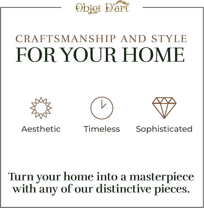 • OBJET D’ART creates high quality home decor furniture with style in mind. Our goal is to help our customers turn their homes into masterpieces with our selection of artistic decorative furniture. Up your personal aesthetic with the selection of any one of our distinctive pieces - furniture as art.
