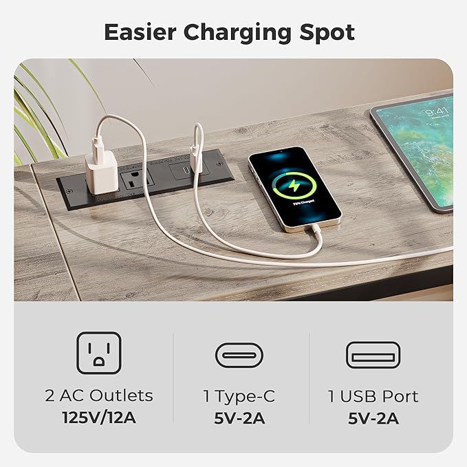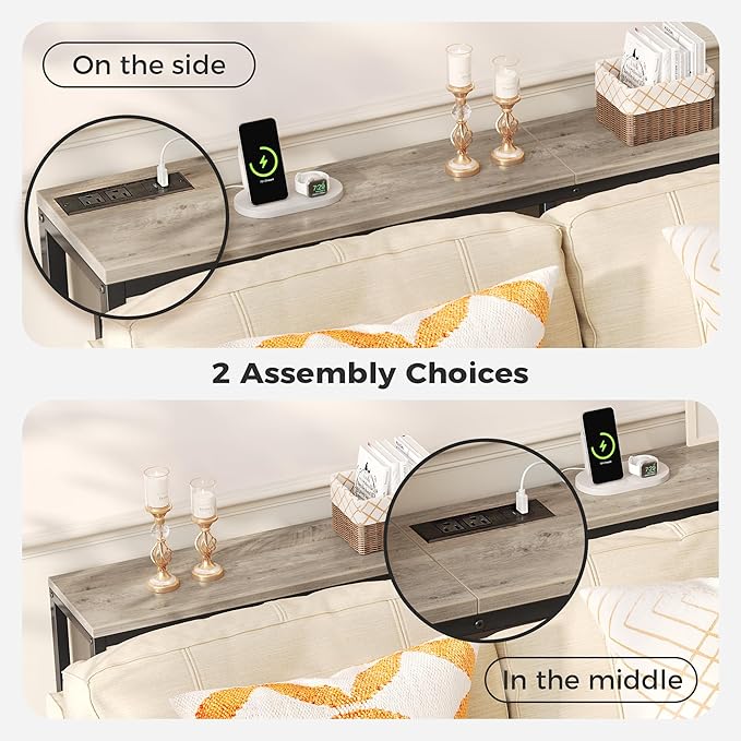 • [No Low Battery Warnings]: Imagine lounging on your sofa and brushing your phones to relax after a busy week. Don’t let low battery disappoint you. Let this sofa table narrow long with 2 AC outlets, 1 USB port and 1 type-C port provide close-at-hand power