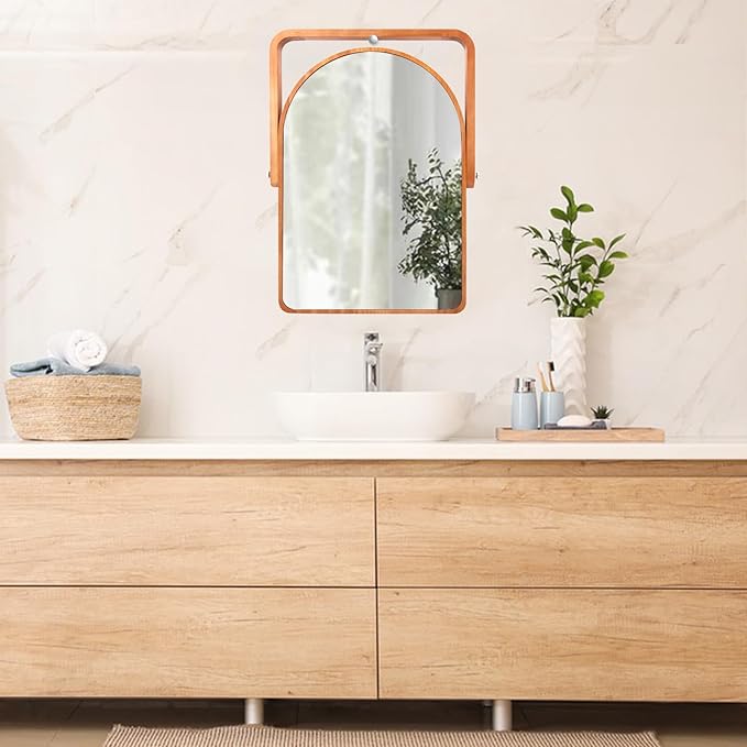 • Rotating Base with Adjustable Angles , This arch mirror is a great vanity makeup mirror because it spins in 360° and lets you angle it to fit your view with the pop-up stand in the back, so you can ensure it supports your daily preparation efforts