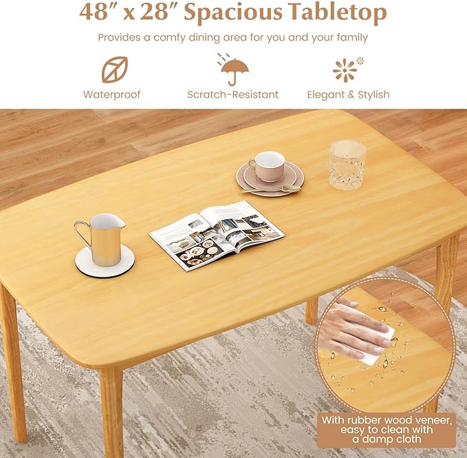 • 【Large Dining Area】: The spacious tabletop measures 48" x 28" (L x W), which can seat 4 persons comfortably, offering plenty of room for family gatherings or entertaining guests. Besides, the wood surface is easy to clean with a damp cloth.