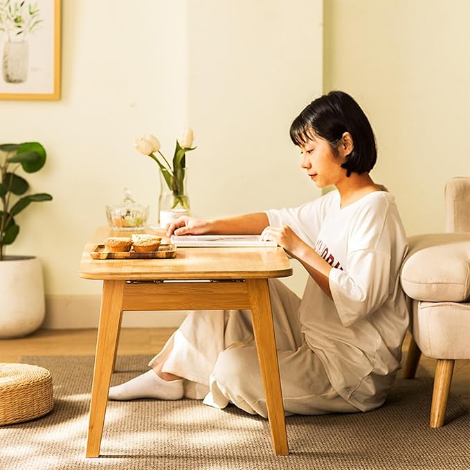 • 【Chic Versatility】With its clean lines and mid-century modern flair, our multifunctional bamboo folding coffee table effortlessly fits into your home decor. Whether in the living room, study, or outdoors, it's a stylish addition serving as a coffee table, floor table, and more.