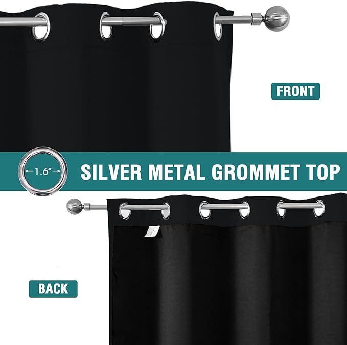• SET DETAILS: Set of 2 total blackout curtain panels per package. Each lined curtain measures 52 inch wide by 120 inch long with 8 silver metal grommets (1.6 inch inner diameter) on top, easy to install and slide.