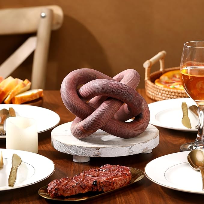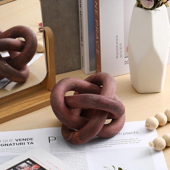 3 Link Wood Knot Decor - Hand Carved Coffee Table Decoration, Boho Chain Link Decor, Modern Shelf, Rustic Objects for Home Living Room Bedroom(Brown)