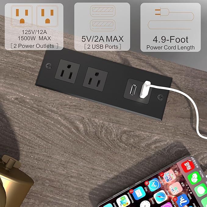• Side Table with Outlets and USB Ports: The charging station includes 2 3-prong AC outlets and 2 USB ports, meeting your needs to charge your phone, desk lamp and laptop freely. 4.9 feet power cord helps you move the tea table easily