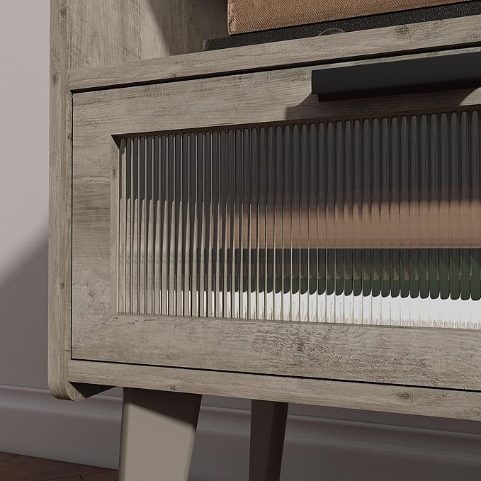 • Nightstand with MORU Glass Door : MORU Glass is a patterned glass with uneven vertical lines, which transmits light but does not see through. It protects your privacy, brings a hazy beauty. It combines modern and mid century element makes the room look more stylish