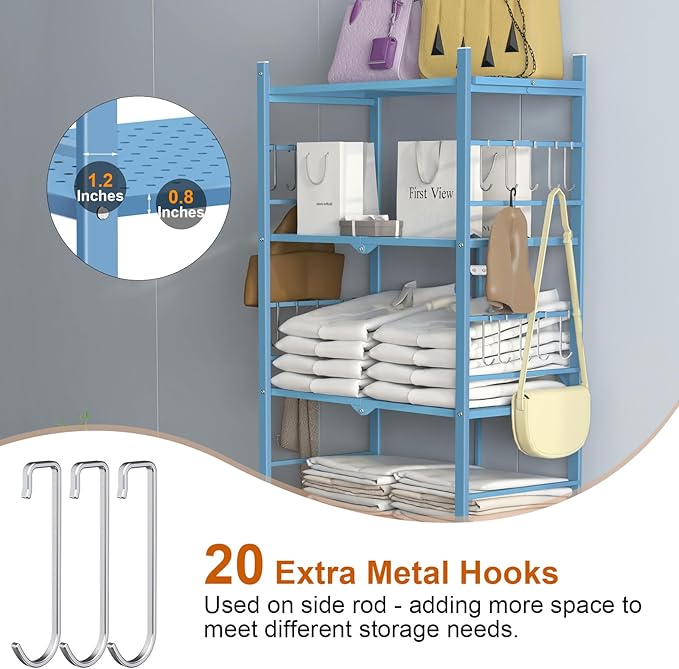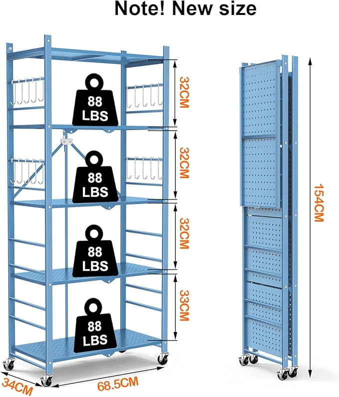 • What Will You Get: Order now, you will get 1* Himix 5-Tier Storage Folding Shelves; 20*hooks;4* Wheels; 4*adjust feet; 600 days no reason to return, 24* hours customer service.
