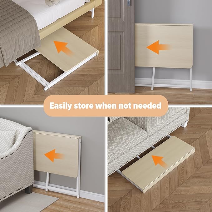 • 【Hided Foldable Desk】Foldable table dimensions is 2.76"D x 31.5"W x 29.52"H when it is folded up, only 2.76" width, very slim to store easily behind a door, under the bed or couch, side of refrigerator, small coner space, or RV etc. when not in use, keeping the tidy of the room. The portable desk is sturdy; Also can take it away for a travel with your family(easy to disassemble so can adapt more types of car space)