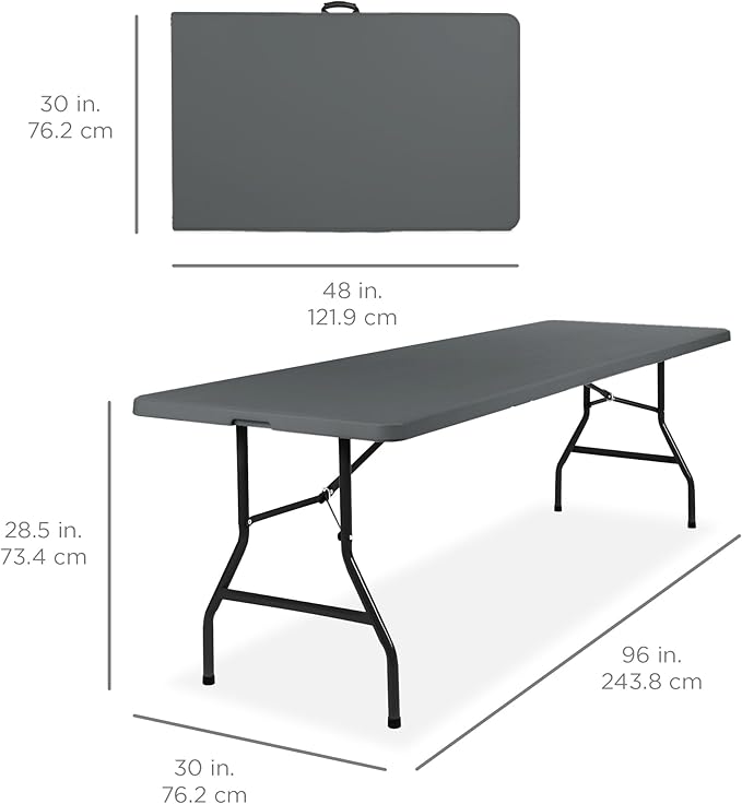 Best Choice Products 8ft Plastic Folding Table, Indoor Outdoor Heavy Duty Portable w/Handle, Lock for Picnic, Party, Pong, Camping - Dark Gray