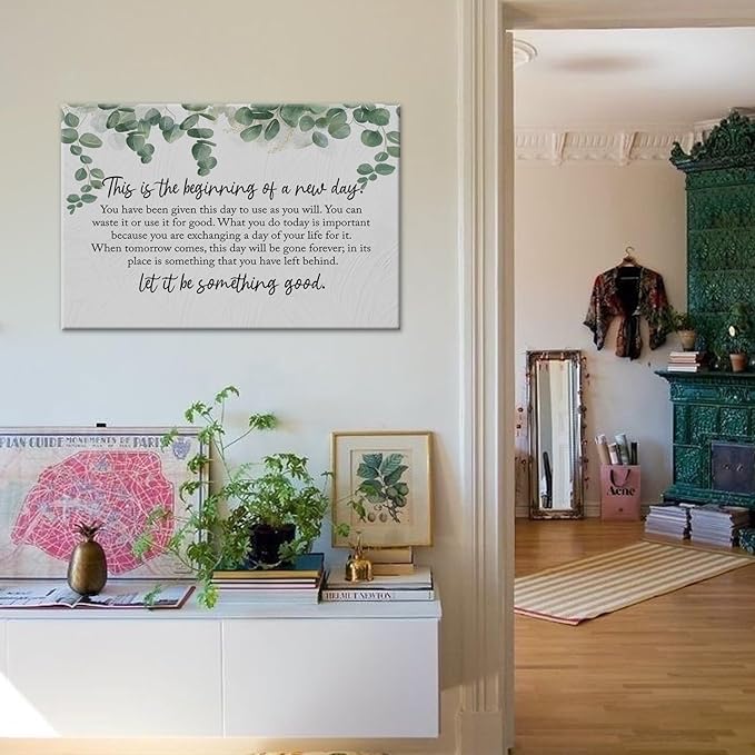 BIWSHA Inspirational This is the Beginning of a New Day Canvas Wall Art Prints Decor for Home Bathroom Bedroom Living Room Office,Motivation Themed Art Decor 16x24 Inch,Positive Saying Art Gifts