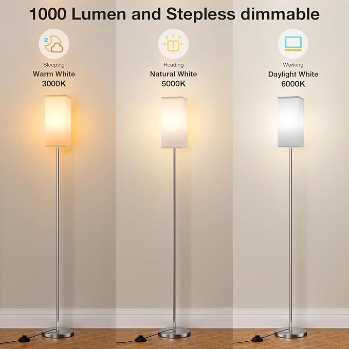 • Remote Floor Lamp for Brightness & Color: This corner floor lamp can use the remote control to adjust the brightness from 30% to 100% and color temperature from 3000K to 6000K, for warm white, natural white, and daylight white.