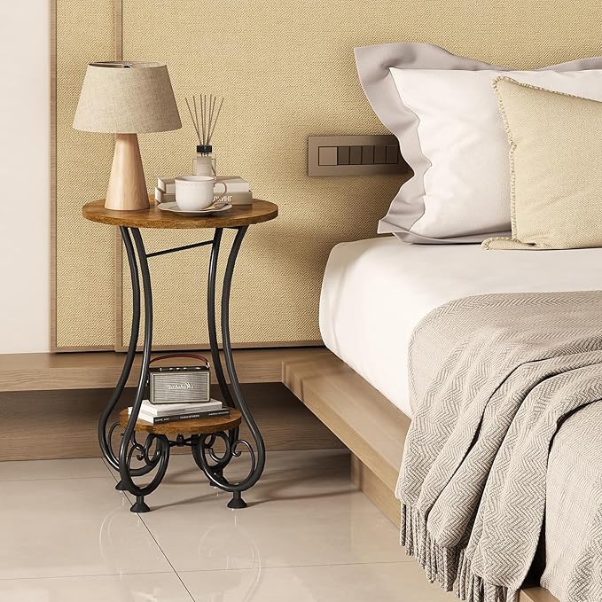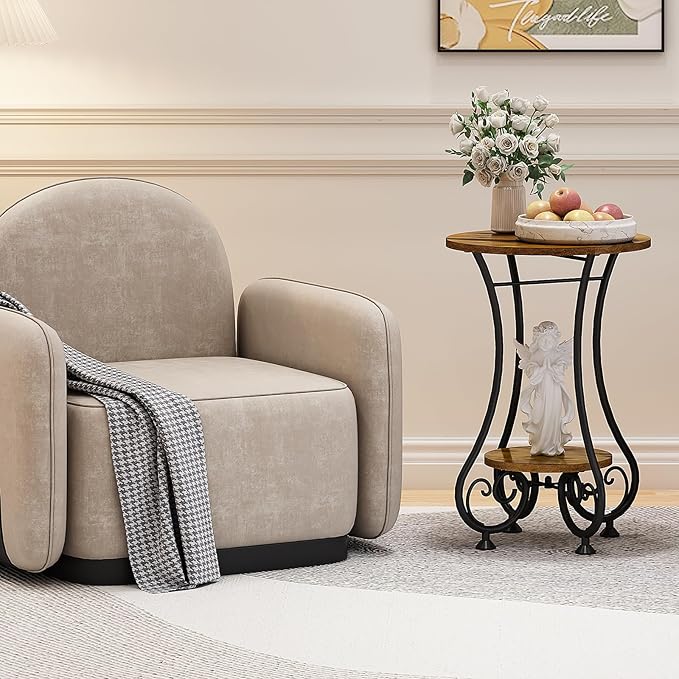 • 【Patent Pending】【Ideal Home Decor】Our round side table made of industrial retro-style waterproof MDF and black iron frame.Not only sturdy and durable, the exquisite appearance design will also add a beautiful scenery to your home decoration in any style.