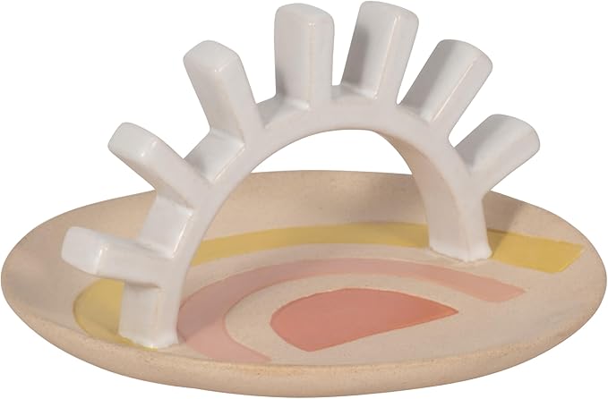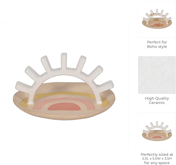 • BOHO-CHIC DESIGN THAT ELEVATES YOUR SPACE - Add a touch of modern bohemian charm to your dresser or nightstand with this beautifully crafted stoneware trinket tray. Featuring a warm, earthy color palette and a unique sunburst arch.