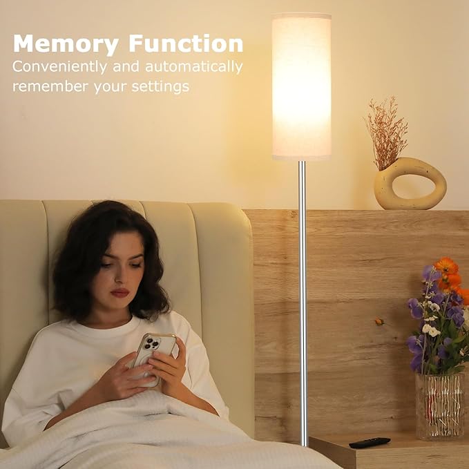 Ambimall 64'' Floor Lamps for Living Room with Remote Control and Stepless Dimmable Colors Temperature & Brightness, 9W Bulb Included(Beige Lampshade & Silver Pole)