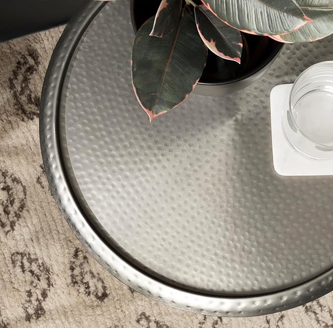 • Unique Design: The Sanzo is handcrafted in India making each piece look distinct thanks to its antique silver finish and hammered tabletop